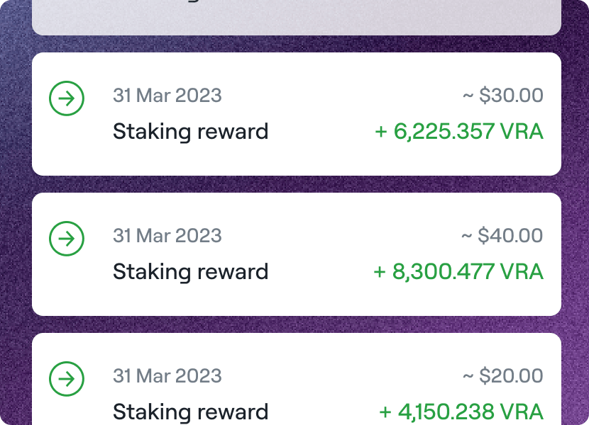 Earn. Get even more VRA by holding your tokens in staking. Up to 15% per year!